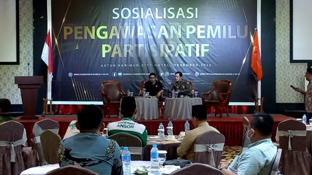 Karimun, Lendoot.com – Badan Pengawas Pemilu (Bawaslu) Kabupaten Karimun menggelar Sosialisasi Pengawasan Pemilu Partisipatif kepada organisasi- organisasi kemasyarakatan di Kabupaten Karimun, Sabtu (24/12/2022).