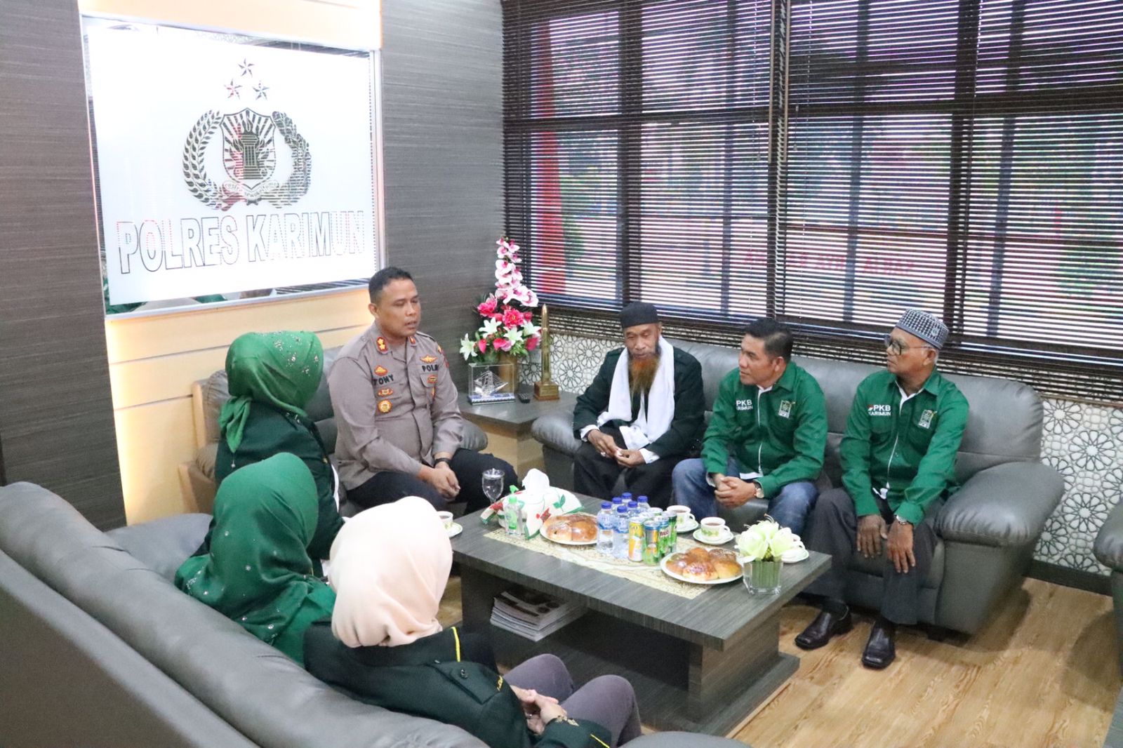 Kapolres AKBP Tony Pantano menerima langsung kunjungan silatuhrahmi yang dipimpin Ketua DPC PKB Karimun, Nyimas Novi Ujiani, Rabu (8/6/2022).