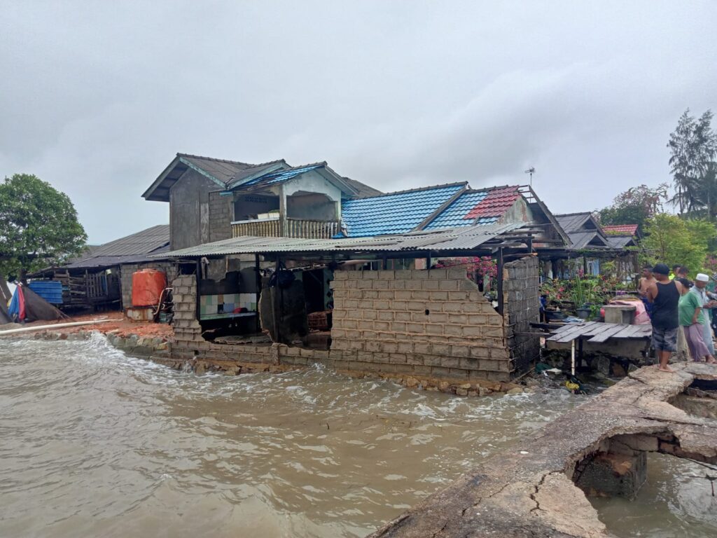 Ia menyebutkan, akibat terjangan ombak itu, bangunan gudang rumah warga, dua unit wc umum dan tembok penahan air rubuh.