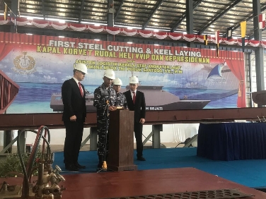 Pembuatan KRI ini diawali dengan pelaksanaan First Steel Cutting (Pemotongan Pelat Baja Pertama) dan Keel Laying (Peletakan Lunas) oleh Asisten Logistik Kepala Staf Angkatan Laut (Aslog Kasal), Laksamana Muda TNI Puguh Santoso, SE, MM di galangan Kapal PT KAS di Tanjung Uncang, kemarin.