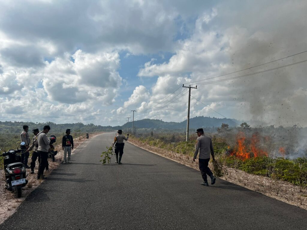 Natuna — Upaya sigap ditunjukkan Kapolsek Bunguran Barat, Raja Oloan Purba, bersama personelnya dan warga dalam memadamkan kebakaran hutan dan lahan (karhutla) seluas kurang lebih 50 hektar.