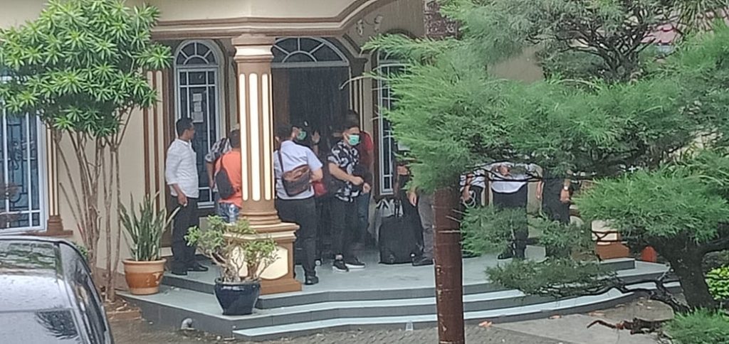 Saat tim KPK meninggalkan rumah pribadi Nurdin Basirun tampak menggunakan dua unit mobil Toyota Innova BP 1574 YD warna hitam dan BP 1480 KY warna krem muda. Cuaca saat penggeledahan disertai hujan lebat. (riandi)