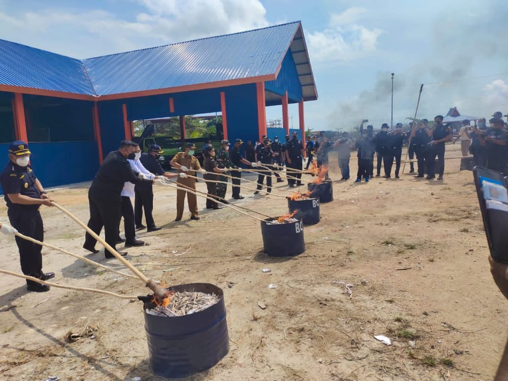 “Pemusnahan barang bukti hasil penindakan ini telau mendapat persetujuan dari Kementerian Keuangan,” katanya.