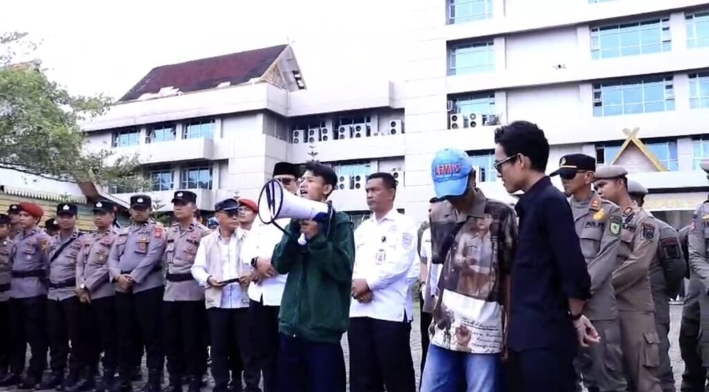 Aspirasi massa diterima langsung oleh Sekretaris Daerah Kabupaten Indragiri Hilir, Tantawi Jauhari, yang hadir bersama Kapolres Inhil dan unsur terkait lainnya.