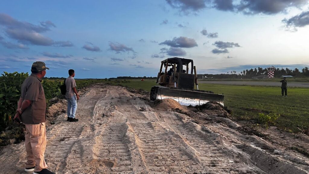 Dalam pelaksanaannya, Lanud RSA mengerahkan alat berat guna meratakan timbunan material pasir, termasuk pada area bekas penumpukan yang masih membentuk akumulasi di sepanjang drainase runway paralel.