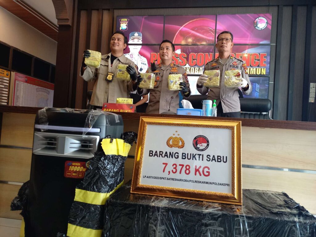 Dalam press konfrensi pengungkapan kasus itu, Kapolres Karimun AKBP Ryky Widya Muharam mengatakan, barang bukti narkoba jenis sabu itu dibawa dari negara Malaysia menggunakan kapal dan masuk melalui Pelabuhan Tikus di Karimun.