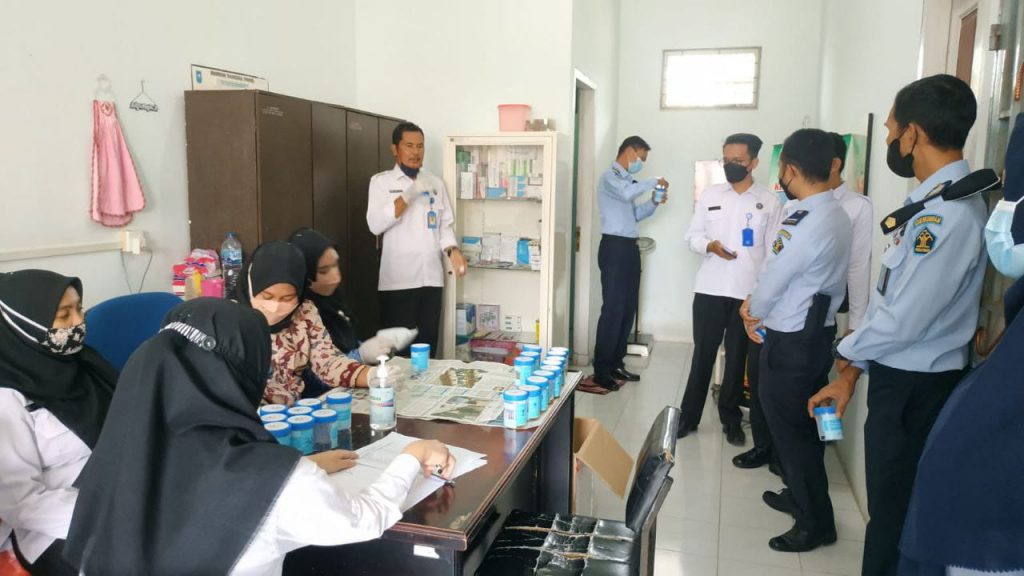 Pengambilan sampel urine dilakukan untuk mendeteksi dini penyebaran Narkotika di lingkungan Rutan Karimun. Kegiatan itu merupakan bentuk kerjasama Rutan Karimun bersama BNN Karimun.