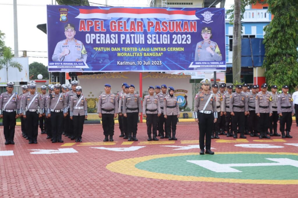 Mengawali Ops Patuh Seligi 2023 ini, Satlantas Polres Karimun menggelar apel gelar pasukan. Apel diipimpin Wakapolres Karimun Kompol Petra CK Tumengkol.