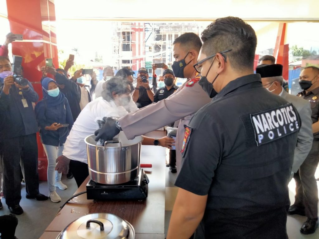 “Total barang bukti Narkoba yang kami musnahkan hari ini ialah sebanyak 6.304,59 gram dan 197,48 gram sudah kami sisihkan untuk dibawa ke Labor Forensik Polda Riau dan sebagai barang bukti persidangan,” kata AKBP Tony.