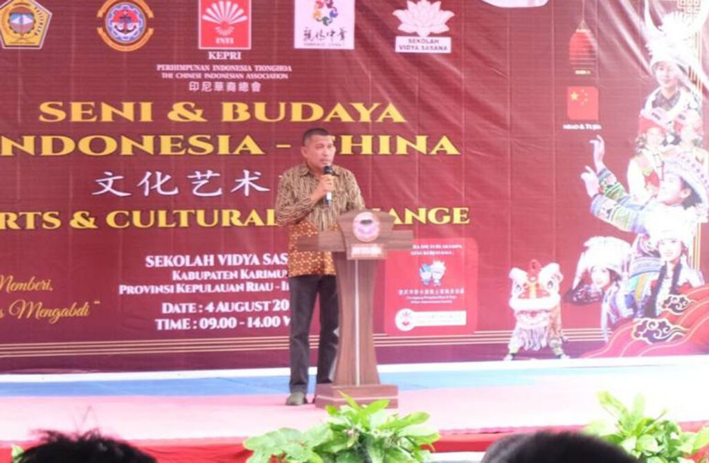 Karimun – Wakil Bupati Karimun, Rocky M Bawole menghadiri kegiatan Seni dan Budaya Indonesia-China: Arts and Cultural Exchange di Sekolah Swasta Vidya Sasana, Karimun, Senin (4/8/2025).