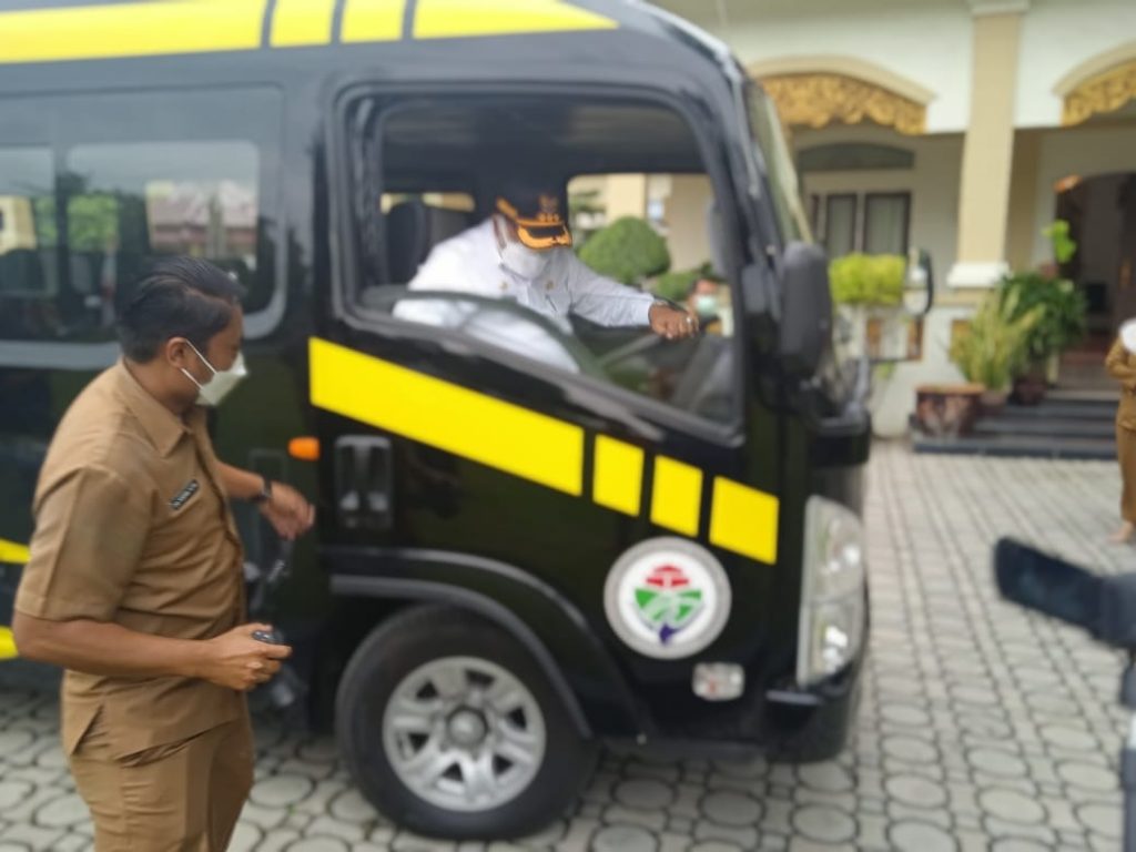 Melalui Pemkab Karimun, Pemerintah Desa Lebuh menerima satu unit bus sekolah tersebut, Selasa (28/12/2021).