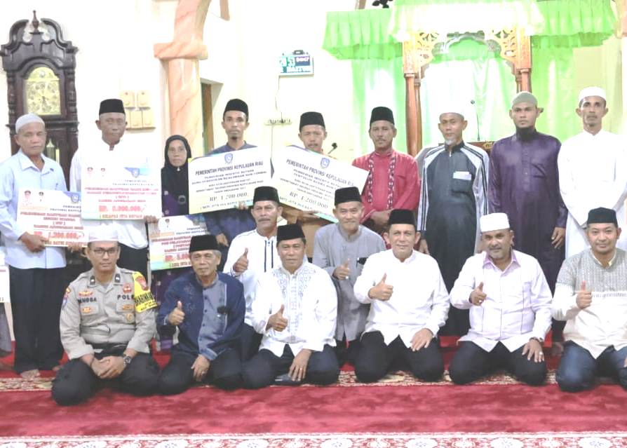 Gubenur Ansar sekaligus menyerahkan bantuan dari Bank Riau Kepri Syariah sebesar Rp5 juta, serta Bupati Aunur Rafiq menyampaikan bantuan dari Pemkab Karimun untuk dua orang imam, dua orang bilal, dan dua orang khatib.