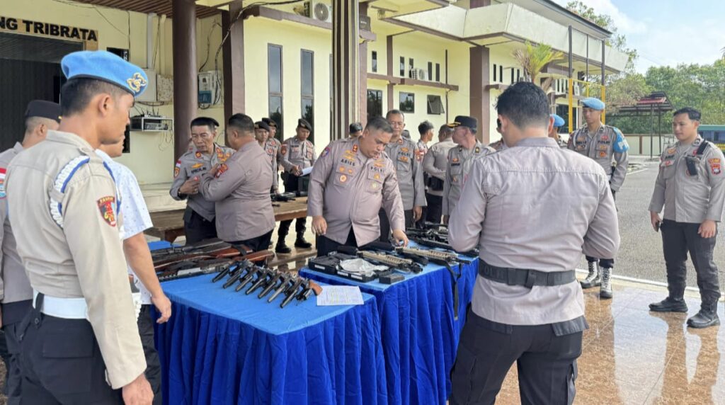 Natuna – Kapolres Natuna Novyan Aries Efendie melaksanakan pengecekan dan pemeriksaan senjata api dinas milik personel di lingkungan Kepolisian Resor Natuna.