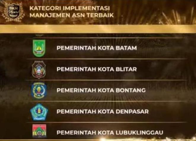 Penghargaan ketiga, Kategori Implementasi Manajemen ASN Terbaik.