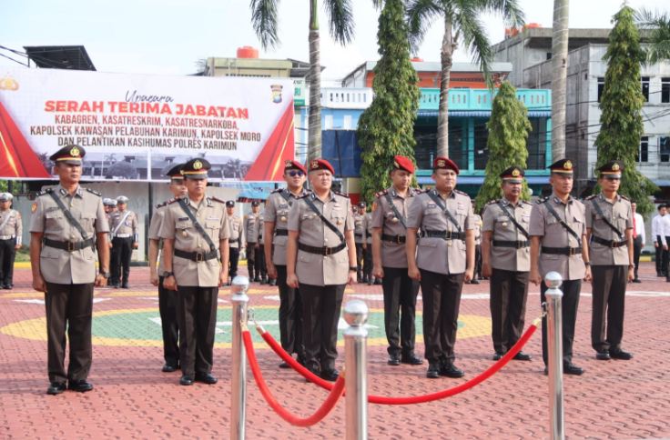 Karimun – Sebanyak lima Kepala Satuan (Kasat) dan Kepala Kepolisian Sektor (Kapolsek) di jajaran Polres Karimun, Kepulauan Riau, resmi berganti. Upacara serah terima jabatan (sertijab) dipimpin langsung oleh Kapolres Karimun AKBP Robby Topan Manusiwa di Lapangan Apel Bhayangkara Polres Karimun, Rabu (8/10/2025).