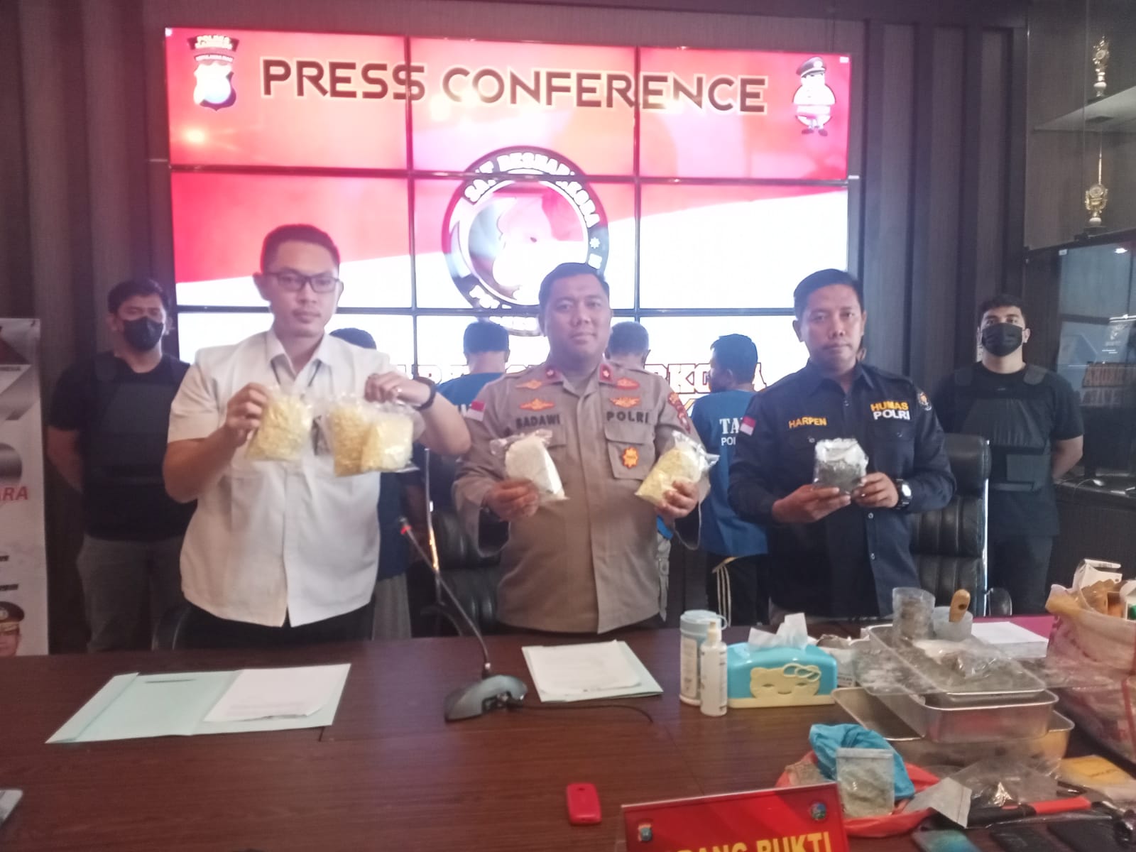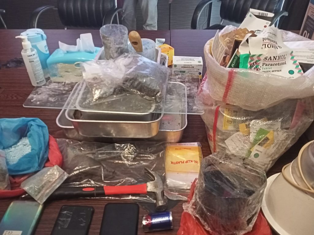 “Selain itu, kita juga mengamankan 402 gram bahan obat-obatan berwarna abu-abu yang sudah diolah menjadi pil yang diduga jenis ekstasi,” jelas Kompol Syaiful Badawi.