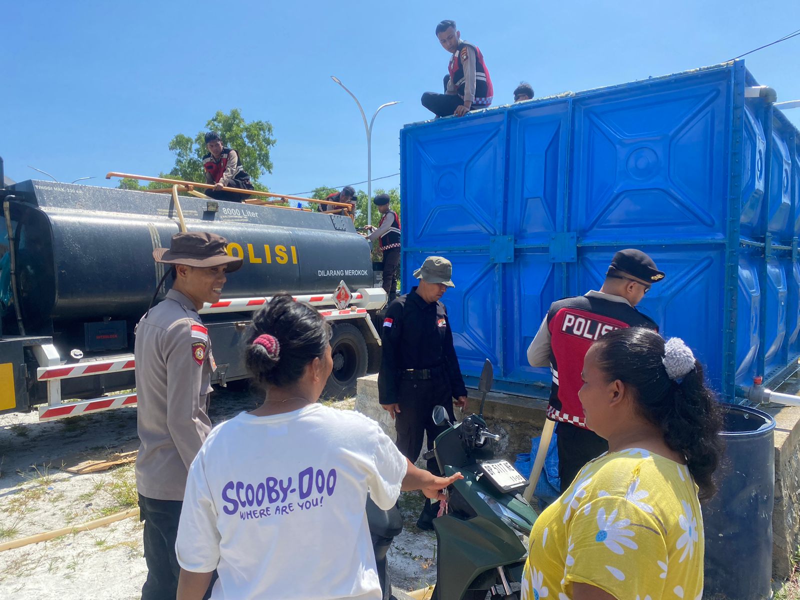 Kegiatan yang dimulai sekitar pukul 09.40 WIB hingga 10.30 WIB tersebut merupakan bentuk kepedulian Polri terhadap masyarakat yang terdampak musim kemarau, khususnya dalam memenuhi kebutuhan air bersih sehari-hari.