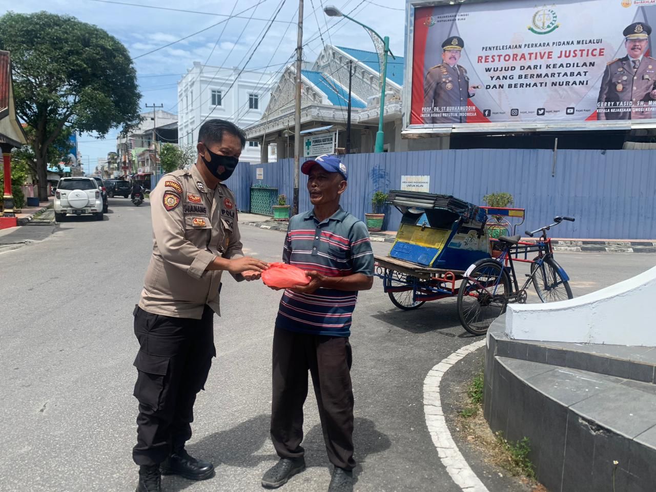 Melalui program Jumat Berkah, Personil Polsek Balai Karimun dipimpin langsung Kapolsek Balai AKP Edy Wiyanto membagikan nasi bungkus kepaea buruh, tukang parkir, tukang becak dan masyarakat membutuhkan lainnya.
