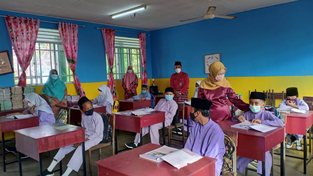 Sekolah- sekolah yang semulanya ditutup, kembali dibuka untuk proses belajar mengajar. Berlangsungnya pembelajaran juga dengan penerapan Protokol Kesehatan (Protkes) yang ketat.