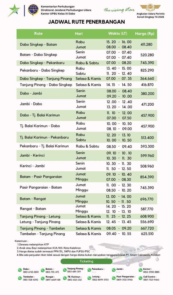 Resmi Dirilis, Ini Jadwal dan Harga Tiket Smart Aviation dari dan ke Karimun Tahun 2026