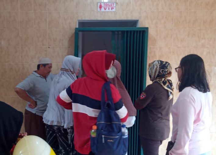 Beberapa warga terlihat tak nyaman mengantre di satu pintu WC di Costal Area Karimun, tempat digelarnya acara.